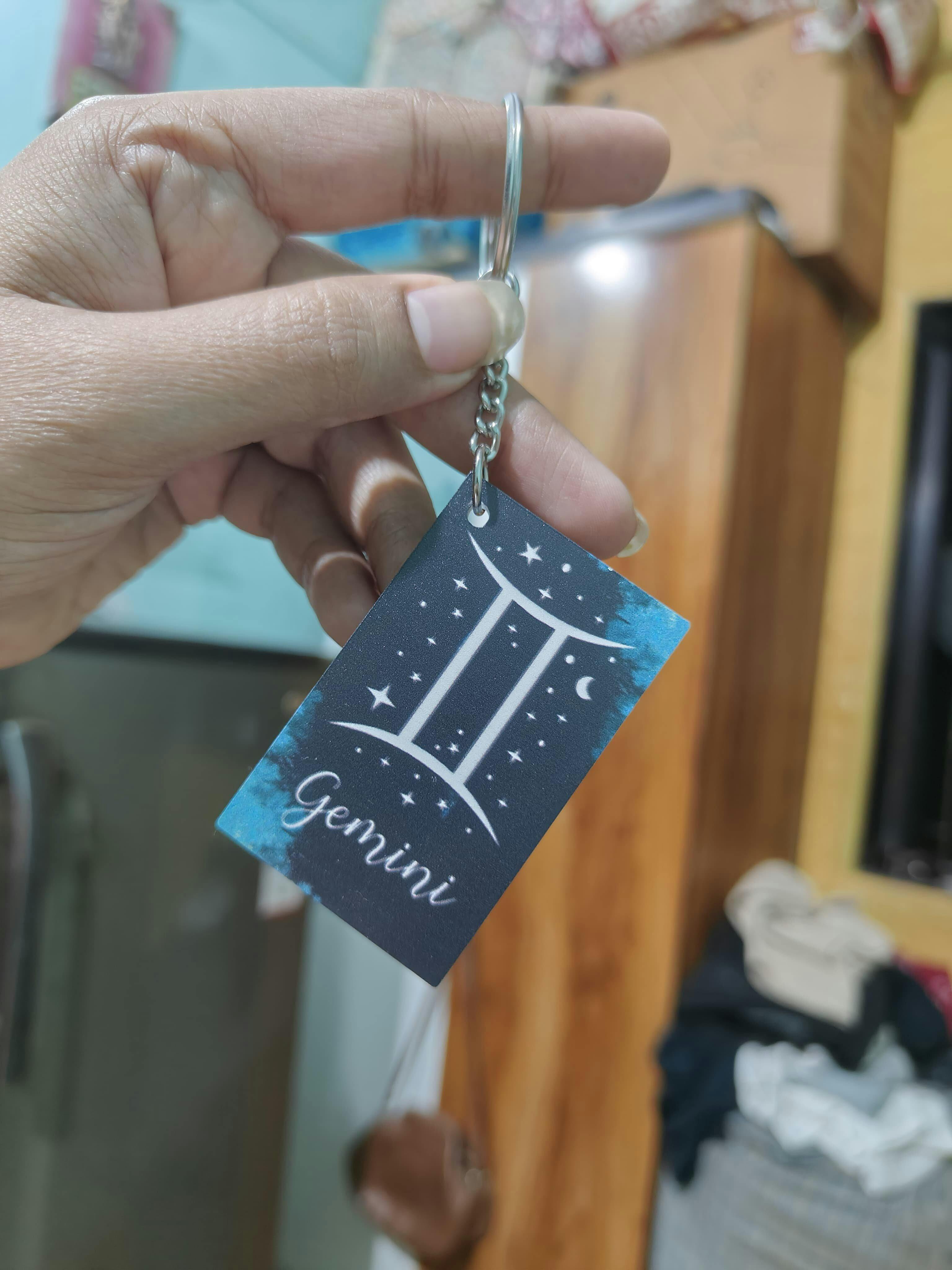 Made from a 3mm glossy acrylic board, this keychain is lightweight, durable, and perfect for daily use. Its rectangle shape and sturdy metal ring make it ideal for keys, bags, pouches, or gifting. A stylish pick for astrology lovers and anyone who enjoys aesthetic zodiac designs.