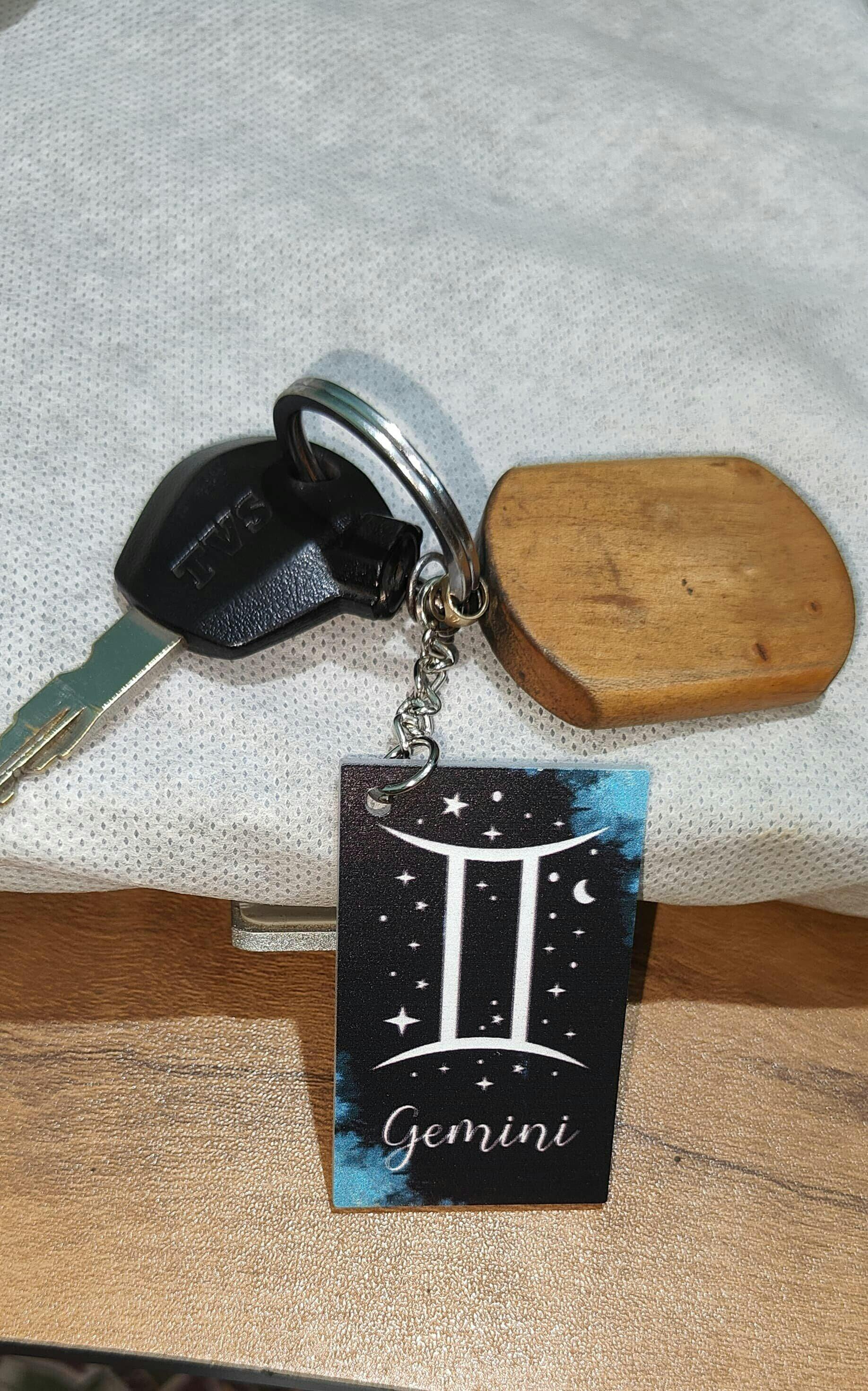 Gemini Zodiac Acrylic Keychain – Celestial Star Sign Design